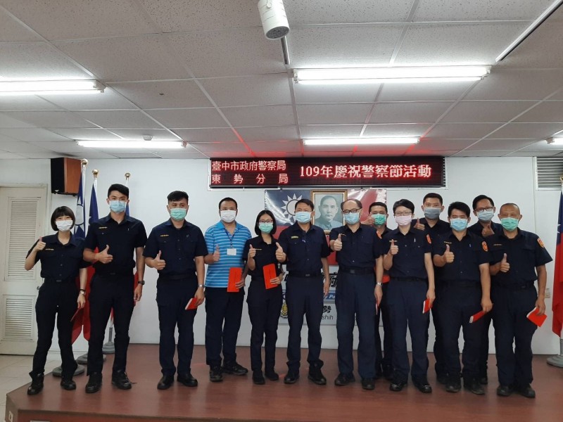慶祝警察節!東勢分局今天舉行歡慶警察節暨表揚績優員警大會,分2020國慶煙火在台南局長陳家銘公開表揚在治安、交通及各項業務推動上有卓越表現的員警,並頒發共2萬元的禮券,會中並準備許多美食,供績優員警享用,歡度警察節。東勢分局在今年4、5月份,刑案方面,共破獲毒品案11件、竊盜案9件、查獲通緝犯23件、尋獲失竊機車2件;交通疏導方面,則協助台中市山城白沙屯媽祖文化協會繞境活動交通疏導,讓活動順利圓滿達成;在為民服務方面,幫助迷途老人返家或協助民眾解決困難事蹟10多件,在各方面表現優異。